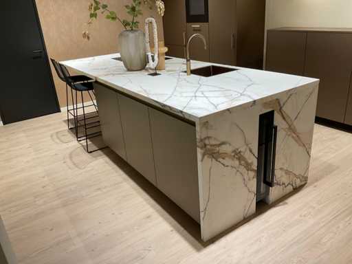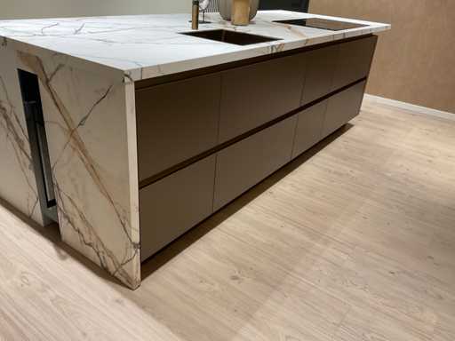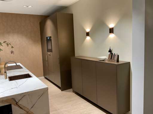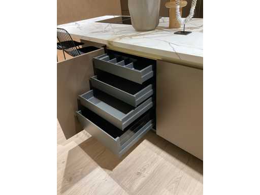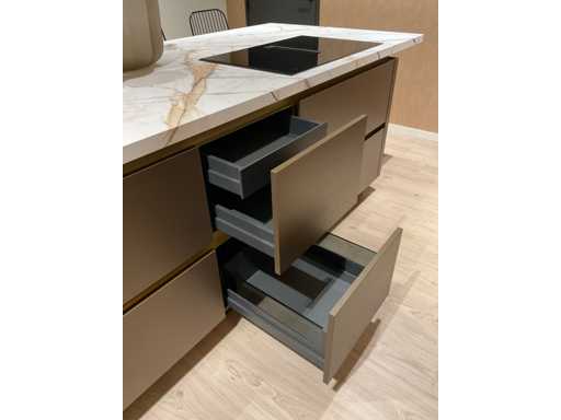 MK Titane Eiland showroomkeuken met kastenwand en buffetkast