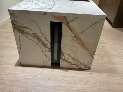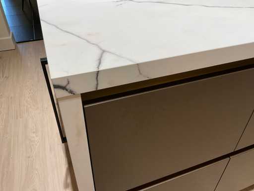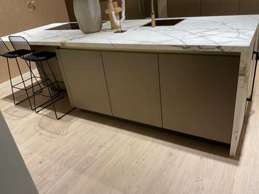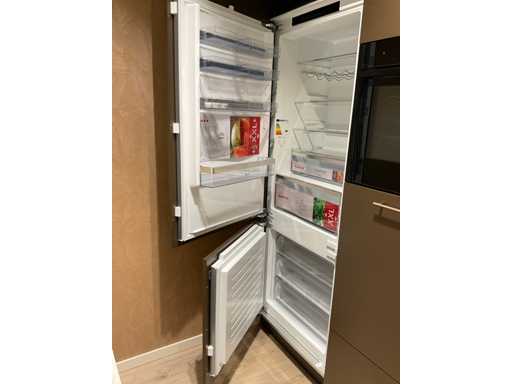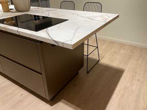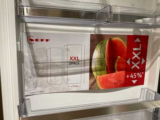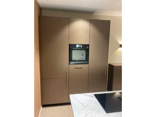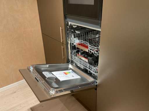 indeling kook-spoeleiland: 3 onderkasten waarvan 1 met 4 binnenladen en een bestekinzet; 4 ladenkasten waarvan 1 met 2 afvalemmers en 1 met binnenlade; zitdeel; Neff 4-zone inbouw inductiekookplaat met geïntegreerde afzuiging; type V68YYX4CO; Vinologics Duna inbouw wijnklimaatkast; type PVZB15-9CRL; inhoud 9 flessen; Indeling hoge kastenwand; afm. 201x60x259 cm; 3 hoge kasten waarvan 1 met 4 binnenladen; 1 met 1 lade en 1 kast; Neff inbouwoven; type B59CR3AY0; inhoud 71 liter; Neff inbouw vaatwasser; type S155EB800E; 13 couverts; Neff inbouw koelvriescombinatie; type KB7966FE0; inhoud 285/98 liter; indeling buffetkast: 3 halfhoge kasten afm. 184x37x106 cm; wandgemonteerd; Scan de QR code voor meer informatie; LET OP: door koper zelf ter plaatse nog te demonteren; zonder de getoonde accessoires