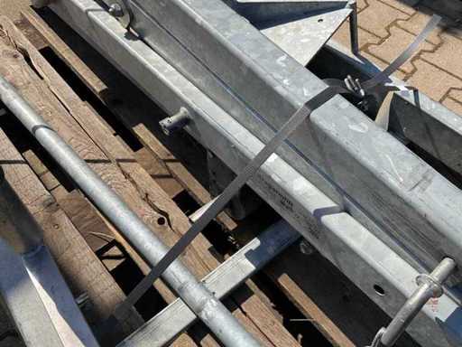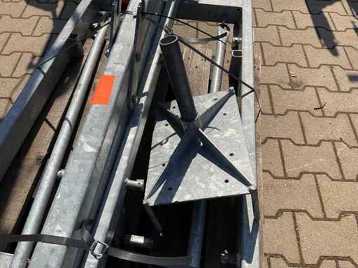 verrijdbaar; handbediend; gegalvaniseerd profielstaal; minimale hefhoogte 1100 mm; demontabel transporteerbaar; not working;