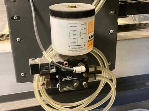 Kenmerken zichtbaar • Groot vlakbed • Portaalbrug • Afzuigaansluitingen • Industriële uitvoering • Meerdere assen (min. X-Y-Z) Gebruik • Nesten / frezen van houtplaten • CNC-gestuurd snijwerk • Meubelproductie / interieurbouw Zo noteren CNC portaalfrees / CNC routertafel voor houtbewerking (Merk/model niet volledig zichtbaar op deze foto’s) ⸻ 4️⃣ Vacuümpomp – BUSCH (typeplaatje) Wat is dit? ➡️ Industriële vacuümpomp voor vacuümtafel Merk ➡️ BUSCH Type ➡️ MM 1252 AV Technische gegevens (van label) • Spanning: 230 / 300 V • Frequentie: 50/60 Hz • Vacuüm: tot ±100 hPa • CE-gekeurd • Made in Germany Functie • Houdt werkstukken vast op CNC-tafel • Essentieel voor plaatbewerking Zo noteren Busch vacuümpomp type MM 1252 AV ⸻ 5️⃣ Automatische smering – UNIST (laatste foto) Wat is dit? ➡️ Automatisch smeersysteem Merk ➡️ UNIST Functie • Doseert olie naar: • geleidingen • rails • bewegende delen • Verlengt levensduur machine • Minder onderhoud Kenmerken • Reservoir ± 0,5 liter • Automatische dosering • Slangen naar smeerpunten