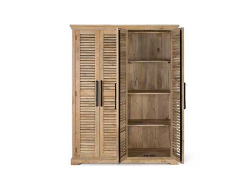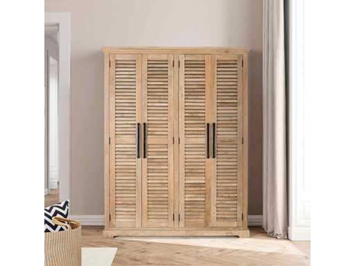 Deze imposante massief mangohouten kast biedt royale opbergruimte met zijn 4 deuren, ophangstangen aan beide zijden en verstelbare boven- en onderplanken. Het gebruikte natuurlijke hout kan knoesten en een originele nerf hebben, wat een vleugje authenticiteit aan het stuk toevoegt. Met een hoogte van 190 cm, een lengte van 150 cm en een breedte van 50 cm biedt deze kast zowel functionaliteit als esthetiek. Met een gewicht van 108 kg is hij zorgvuldig verpakt in een doos met afmetingen 195x155x55 cm, klaar voor gebruik zonder dat montage nodig is. HEEL BELANGRIJK! GEASSEMBLEERD PRODUCT! Voordat u overgaat tot de aankoop, raden wij u ten zeerste aan om de afmetingen van de ingangen van uw huis of kamer te controleren, evenals de beschikbare ruimte in het trappenhuis en de grootte van de lift, indien van toepassing. Dit zorgt ervoor dat de geselecteerde meubels probleemloos kunnen worden vervoerd en geïnstalleerd. Uw samenwerking is essentieel voor een bevredigende winkelervaring! Omdat het een natuurlijk en handgemaakt houten meubelstuk is, kan het zijn originele knoesten en aders behouden en kan het daarom verschillen hebben als het gaat om kleur.