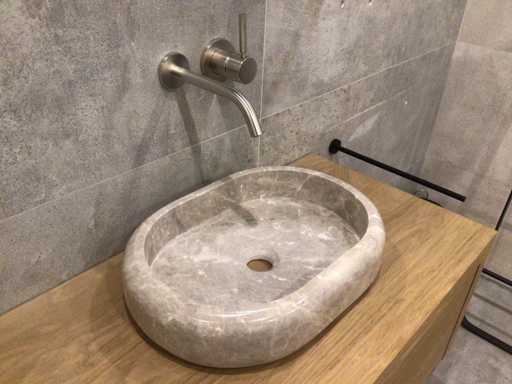 Natuursteen Marmer Beige/Grey Oval Waskom 47x34x10 cm