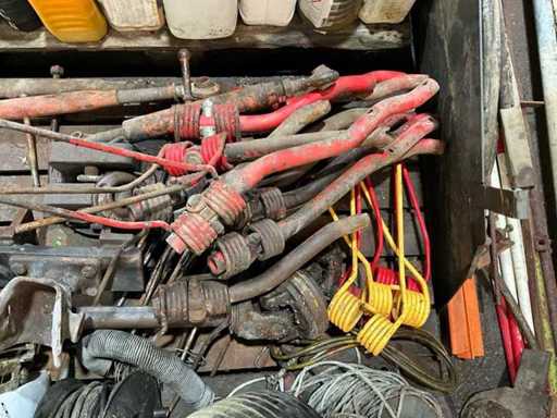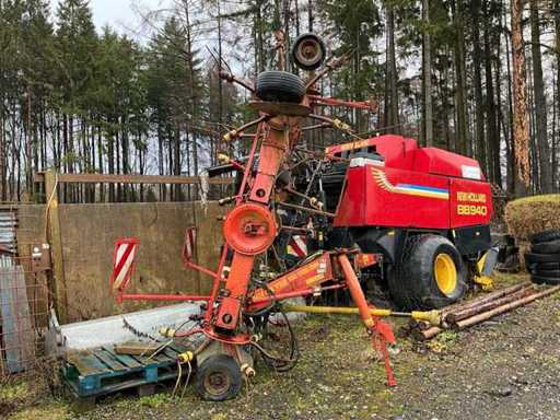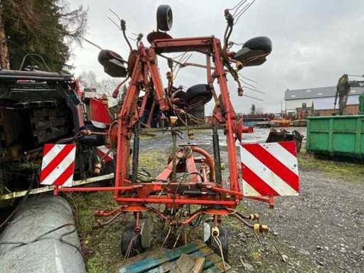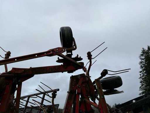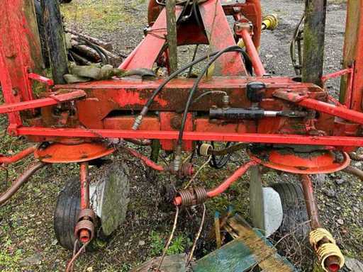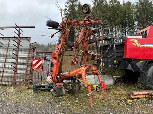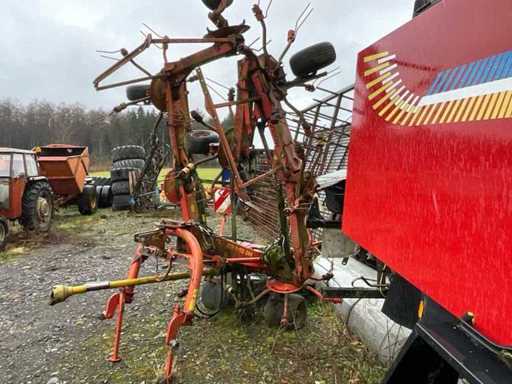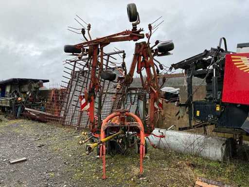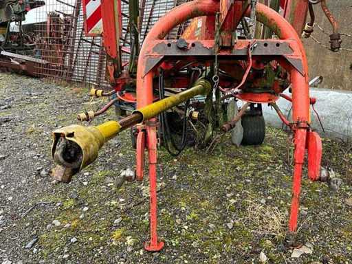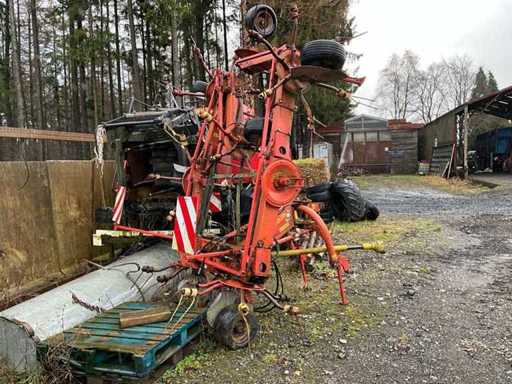 Een opwindmachine, die is beschadigd tegen een hek, sommige armen zijn gebroken
