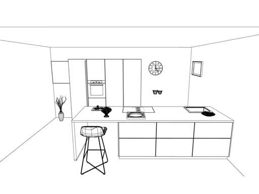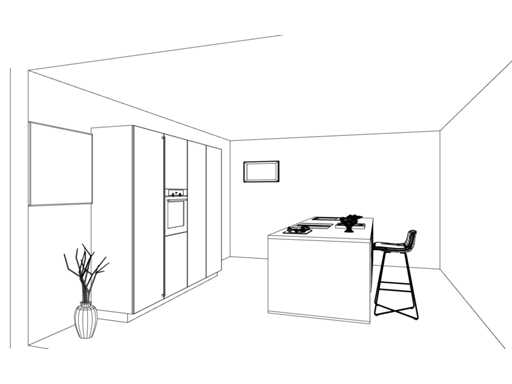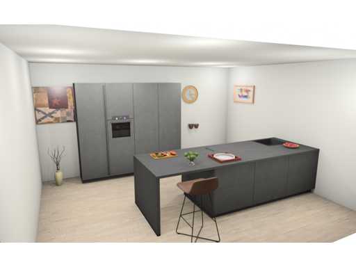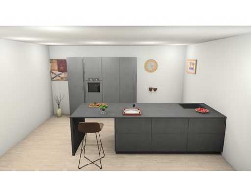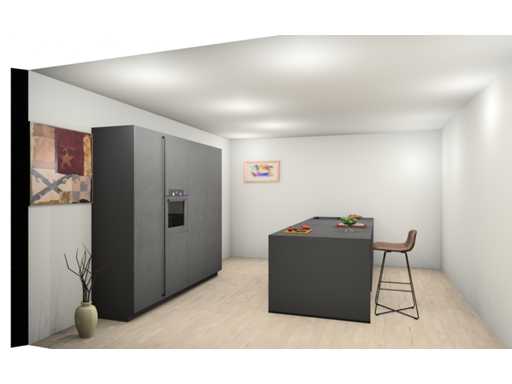 Let op! Keuken staat niet opgesteld, enkel 3D tekening en wordt geleverd ongebruikt in doos.