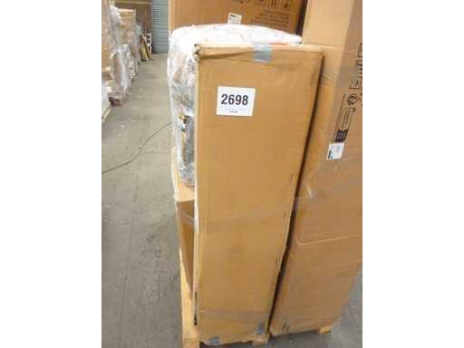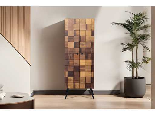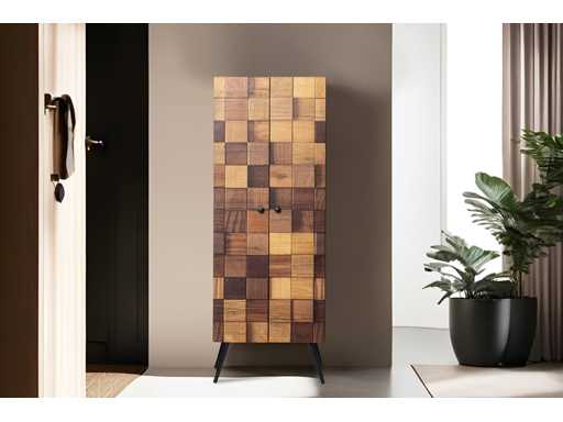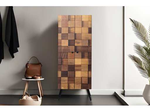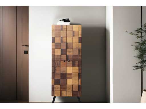 100% melamine spaanplaat. Dikte: 18 mm. IJzeren benen. Breedte: 51 cm. Hoogte: 140 cm. Diepte: 32 cm. Wandmontage mogelijk.