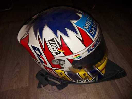 F 1 Helm - gedragen bij enkele grand prix's in seizoen 1988 - team Benetton Ford - incl brandwerende baclava