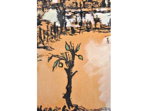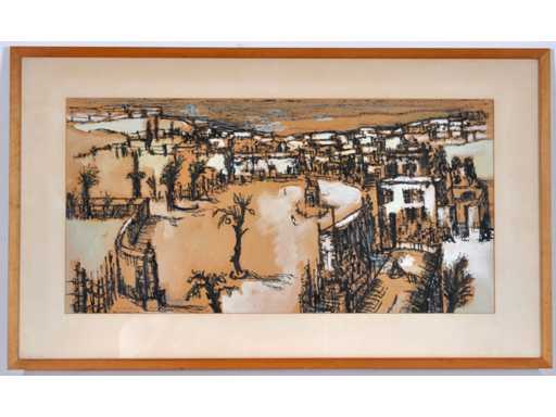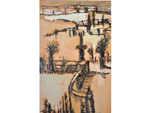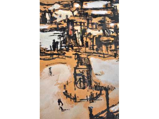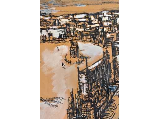 Onleesbaar signatuur - Stadszicht - gemengde techniek
