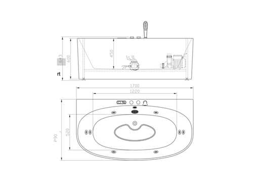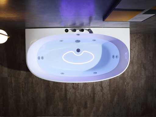 waterval inlaat voor toevoer van water, verlichting met kleurentherapie, watertemperatuur regelbaar afvoer pop-up met flexibele waterslang, verwarming 2000 watt(totaal 3500 watt), met plug and play 220v stekker, massagepompen 1x 1 pk hydropomp en 1 luchtpomp (sterkte regelbaar), 8 hydro massagejets en diverse luchtjets, verwarming (2000watt), droogloop en waterniveau beveiliging, handdouche met kraanwerk, sterkte van jets regelbaar,mat zwart kraanwerk van messing, onderstel verstelbaar en van rvs