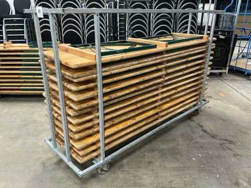 Liggende op 2 diverse metalen transportkarren waaronder 230 x 70 x 148cm