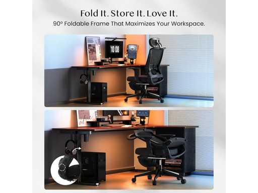 90° OPVOUWBAAR ONTWERP SPART RUIMTE - Onze opvouwbare bureaustoel is ontworpen met een handig 90° vouwmechanisme dat het gemakkelijk maakt om hem onder je bureau op te bergen als je hem niet gebruikt. Deze ruimtebesparende oplossing is perfect voor kleine werkplekken en helpt je het meeste uit je ruimte te halen zonder comfort in te leveren.