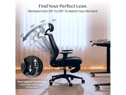 VERSTELBARE RUGLEUNING VOOR PERSOONLIJK COMFORT - De verstelbare rugleuning van deze ergonomische bureaustoel kan achterover leunen van 105° tot 135°, waardoor je de perfecte hoek vindt voor ontspannend of geconcentreerd werk. Of je nu wilt ontspannen of je wilt focussen op je werk, je kunt de houding gemakkelijk aanpassen.