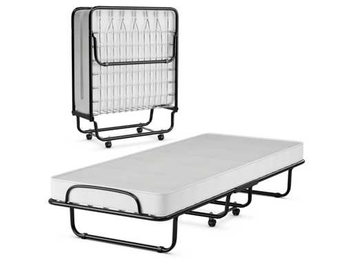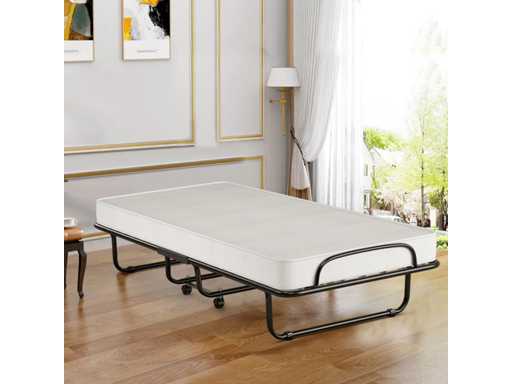 Stevige constructie: Het opvouwbare bed rust op een stevig U-vormig stalen frame, dat tot 120 kg kan dragen en uitstekende stabiliteit biedt. De gepoedercoate stalen buizen zijn beschermd tegen roest en garanderen hun duurzaamheid. Daarnaast versterken verschillende metalen gespen de sterkte. Comfortabel hoogdichtheid traagschuimmatras: Dit opklapbed is uitgerust met een matras van 10 cm dik dat optimale ondersteuning biedt voor maximaal comfort. Binnenin het matras vormt ultrazacht, hoogdicht traagschuim zich aan de rondingen van het lichaam en helpt vermoeidheid te verlichten. Ruimtebesparend opvouwbaar ontwerp: Dit opklapbed vouwt gemakkelijk op voor compacte opslag. Je kunt het onder een bed, bank of in een hoek bewaren zonder veel ruimte in te nemen. Daarnaast helpen clips om het opgevouwen bed stevig op zijn plaats te houden. Gemakkelijk te verplaatsen en multifunctioneel ontwerp: dankzij de 4 universele 360° draaiwielen kun je het bed gemakkelijk overal naartoe verplaatsen of meenemen, niet alleen als extra bed voor de woonkamer of slaapkamer, maar ook als tijdelijk bed voor kantoor, kampeer, caravan of ziekenhuis. Eenvoudig in elkaar te zetten: dankzij de gedetailleerde instructies en de meegeleverde schroeven kan het bed snel en eenvoudig worden gemonteerd. Daarnaast beschermen de antislipvoeten de vloer effectief en zorgen ze voor goede stabiliteit.