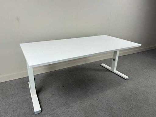Witte bureau met melamine topblad , wit metalen onderstel