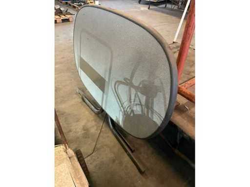 Inklapbaar, op metalen onderstel voorzien van formica bovenblad