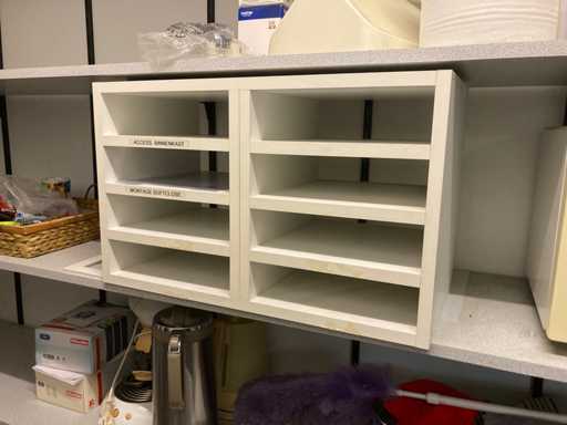 Wand opbergsysteem : 8 latten om op de muur te bevestigen, 28 plankenhouders, 5 planken van L250xD40cm