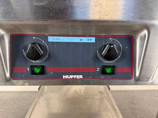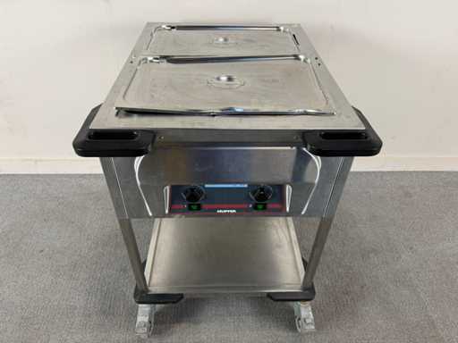 Professionele RVS warmhoudwagen van Hupfer, geschikt voor het warmhouden en serveren van gerechten in horeca-, catering- of grootkeukentoepassingen.