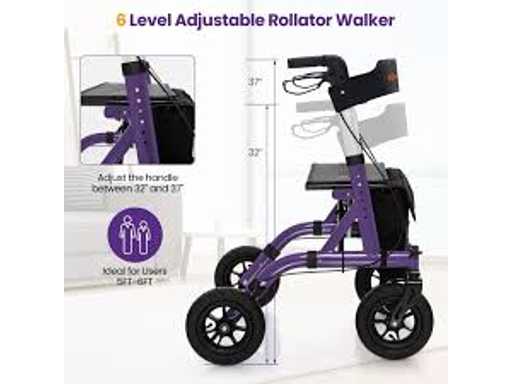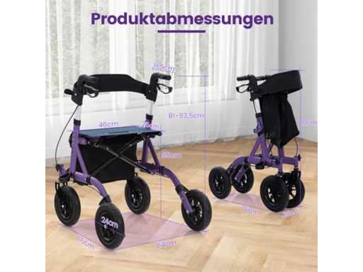 Ervaar uitzonderlijke mobiliteit en comfort met onze opklapbare rollator op wielen met zit, in een stijlvolle paarse kleur. Deze innovatieve rollator kan gemakkelijk worden omgebouwd tot een rolstoel, wat de perfecte oplossing biedt voor wie zijn onafhankelijkheid waardeert, maar toch regelmatige pauzes nodig heeft. De 24 cm all-terrain pneumatische wielen zorgen voor een soepele rit op alle ondergronden, van asfalt tot parket. Lichtgewicht van slechts 8,5 kg, vouwt hij compact op voor eenvoudige opslag en transport, waardoor hij perfect is voor binnen- en buitengebruik. Met een gewatteerde stoel, comfortabele rugleuning, verstelbare handgrepen en veilige antisliphandvatten met dubbele remmen, is deze rollator ontworpen om aan de behoeften van ouderen te voldoen, met stabiliteit en comfort bij elke stap.