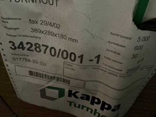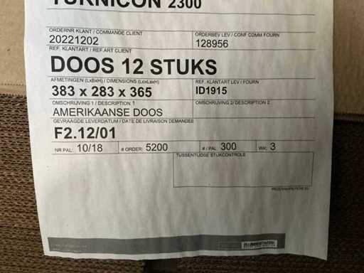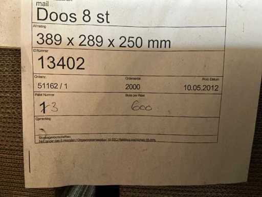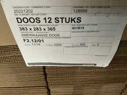 Waaronder: 383x283x365 circa 600 stuks. 389x289x250 circa 600 stuks. 389x289x180 circa 600 stuks.