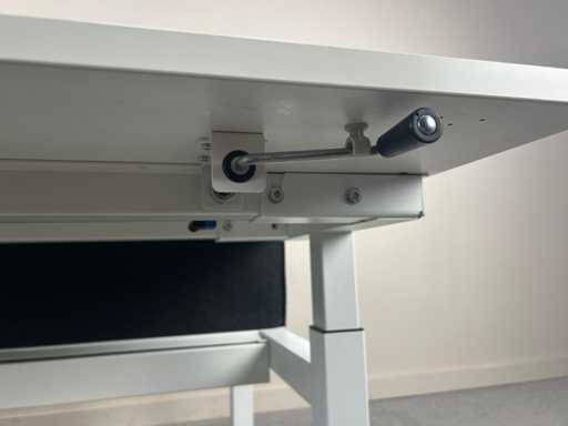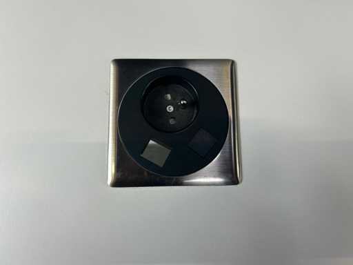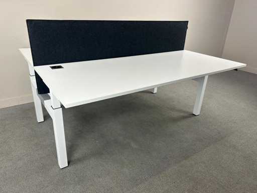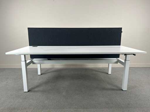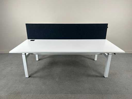 Pami 2p workbench met zwarte scheider en individueel verstelbare blad hoogte van 62cm tot 84cm, elektrisch uitgerust met stopcontact. In goede staat.