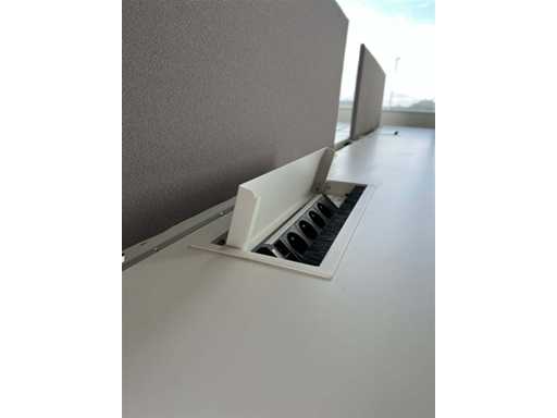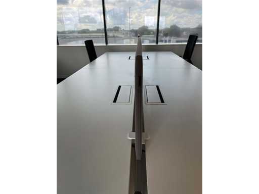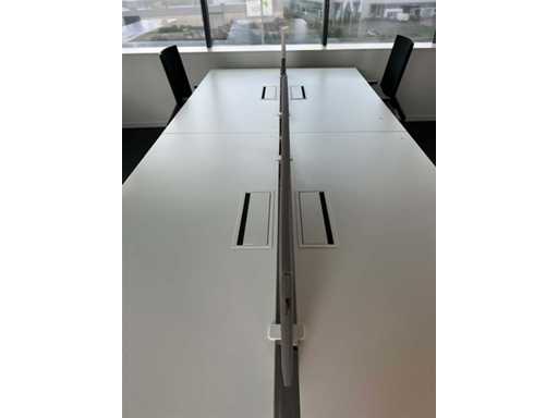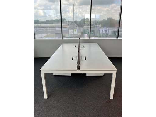 PAMI 4p Workbench B320xD160xH74 - wit melamine bovenblad / witte U-poot, normale gebruikssporen, zonder elektrificatie en stoelen/ladenblokken