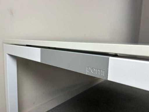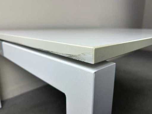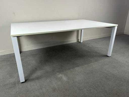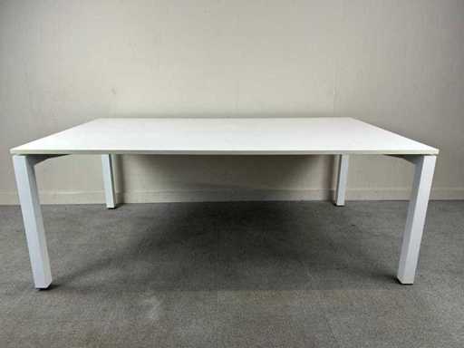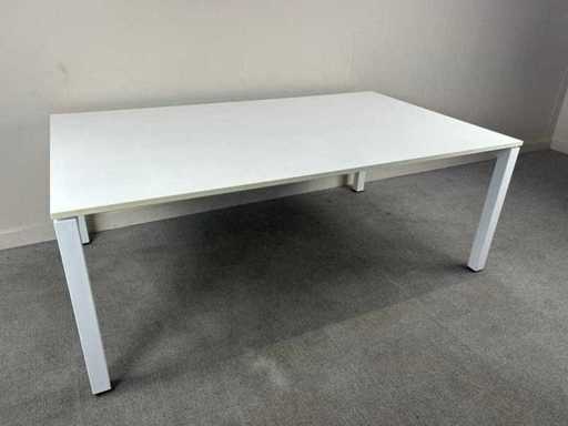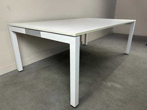 Pami witte vergadertafel met melamine blad (200x120). Enkele gebruikssporen, krassen op de randen.