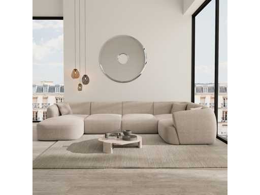 Panoramische rechterhoekbank - beige stof
