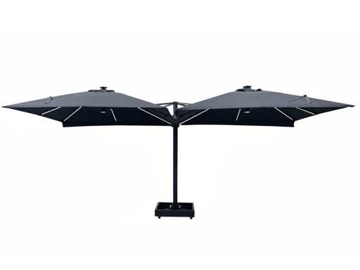 Type: U1075 QUATRE 3X3 SANDY. De parasol is ideaal voor gebruik in de horeca en/of op een groot terras, tuin of binnenplaats. De parasol bestaat uit 4 parasols aan een frame en is voorzien van een grondanker. Exclusief verrijdbare parasolvoet: deze is los verkrijgbaar. Voorzien van: LED-verlichting onder het doek zodat het 's avonds ook nog goed vertoeven is onder de parasol. - Groot parasoldoek, 4 stuks, met een afmeting van ø300 cm. - Sterk en stevig frame gemaakt van aluminium. - Eenvoudig startklaar te zetten voor gebruik. - Brandvertragend, dik doek voor een betere UV-bescherming. - Ventilatie aan de bovenzijde van het doek. - De parasols zijn voorzien van een afritsbaar tussenstuk om de parasols te verbinden.