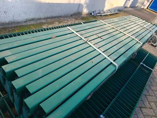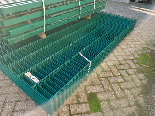 17 matten met 18 palen; afmeting 2500x1630 mm; maas grootte 50x200 mm; transport afmeting circa 2800x1850x750 mm; zonder bevestigingsmaterialen; dikte 8/6/8mm ongebruikt