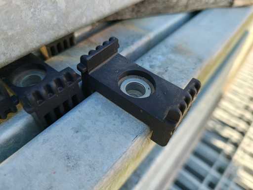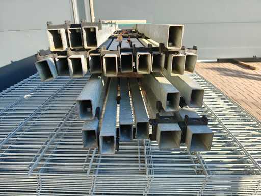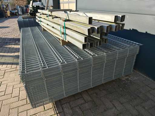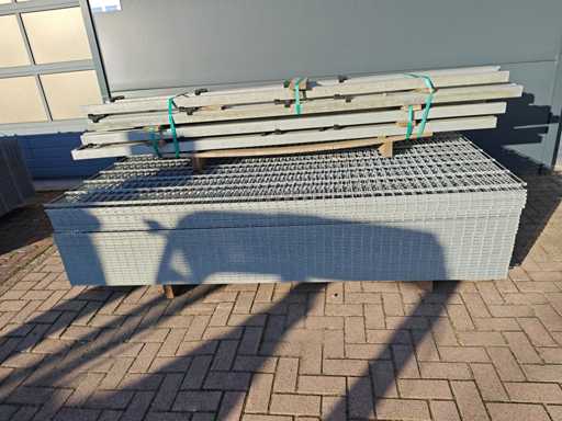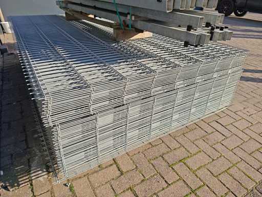 55 matten met 23 palen; afmeting 2500x1630 mm; maas grootte 50x200 mm; transport afmeting circa 2500x1630x1300 mm; zonder bevestigingsmaterialen; dikte 6/5/6 mm ongebruikt
