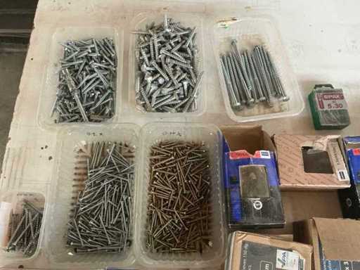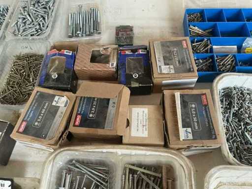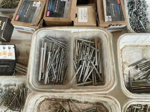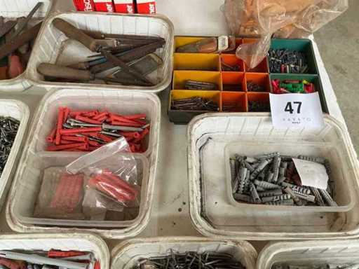 Waaronder Slagpluggen, schroeven, vijzen, pluggen, enige vijlen, nagels, spaanplaatschroeven, 9x krukgarnituur Hormann, afgifte volgens aanwijzing