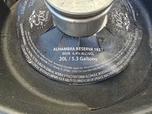 Machou,SA bierfust 20 liter statiegeld (leeg), Alhambra Reserva 1925 . normaal waarde statiegeld €30,- per stuk