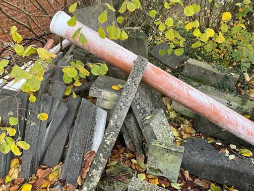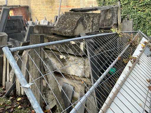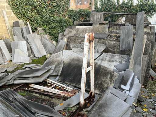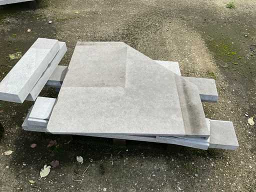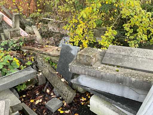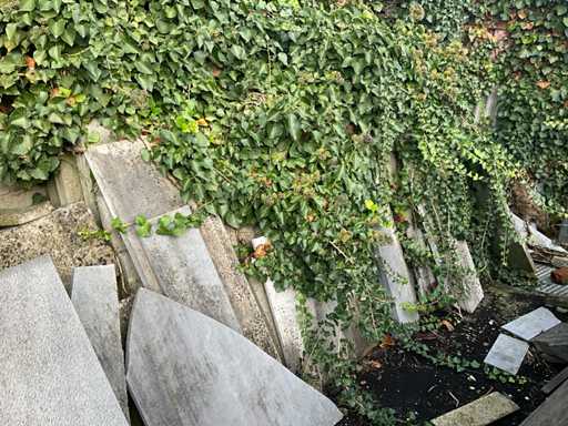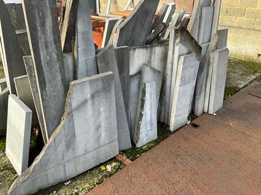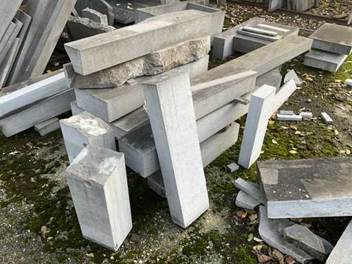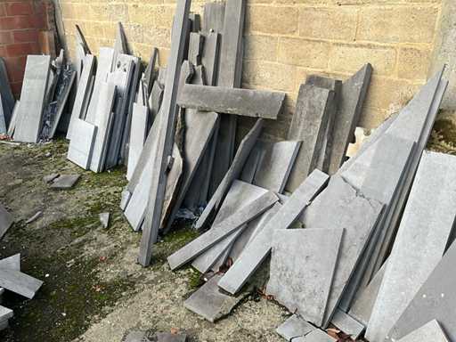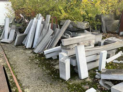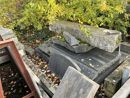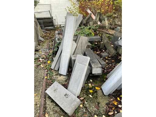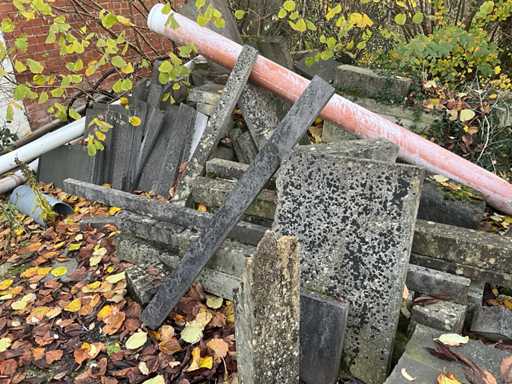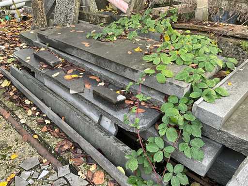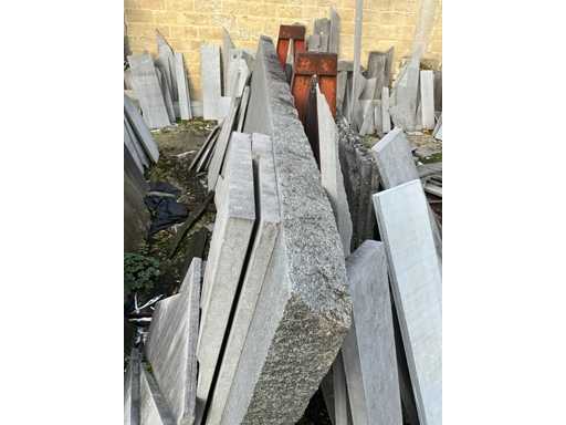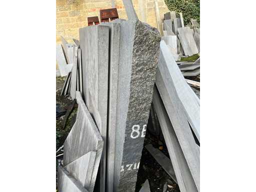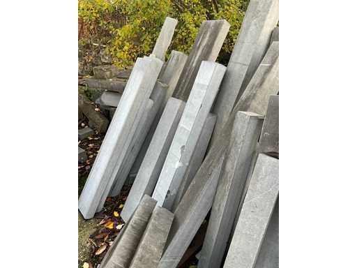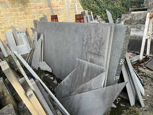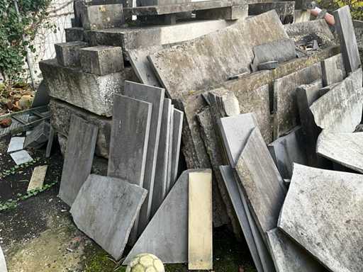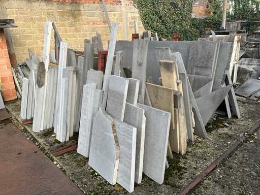 divers natuursteen in diverse afmetingen waaronder blauwsteen, blauwsteenplaat met afmeting:310x130x10cm, compleet met 3x metalen bok, afgifte volgens aanwijzing
