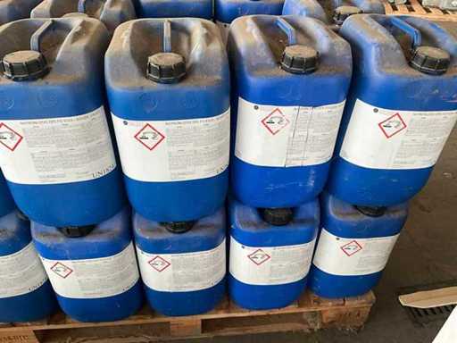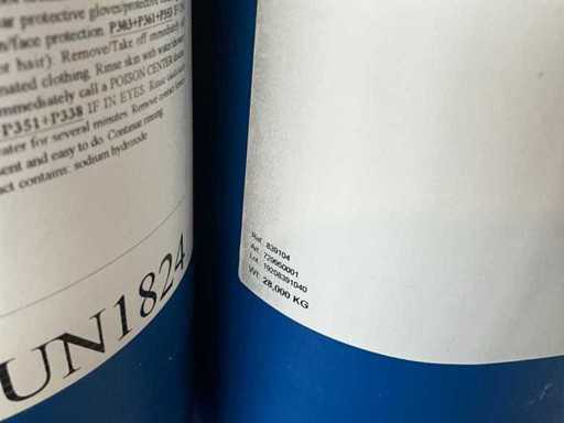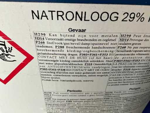 Elke bidon inhoudende 28 kg, natronloog 29 %.