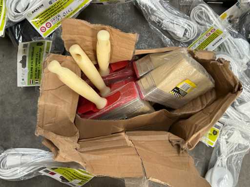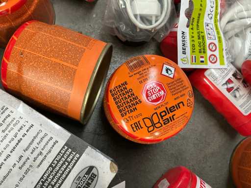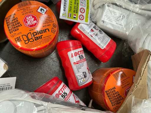Bestaande uit diverse verlengsnoeren, gasbidons, verfborstels, loctite 55