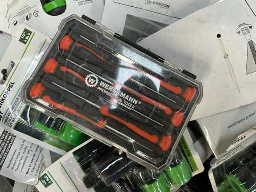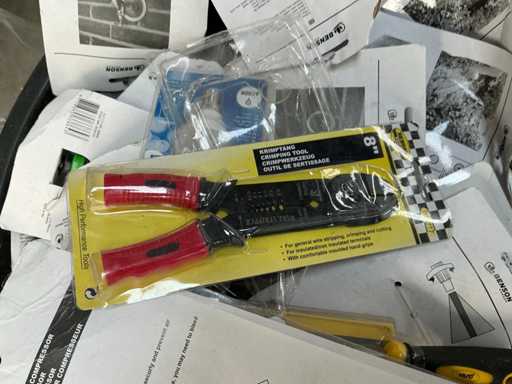 Bestaande uit diverse verlengsnoeren, gasbidons, verfborstels, loctite 55