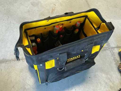 Waaronder 2 waterpassen STANLEY, 2 zagen, 1 winkelhaak, diverse plaatscharen, diverse tangen en schroevendraaiers,