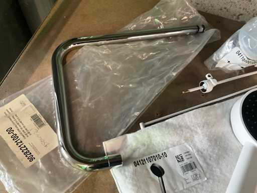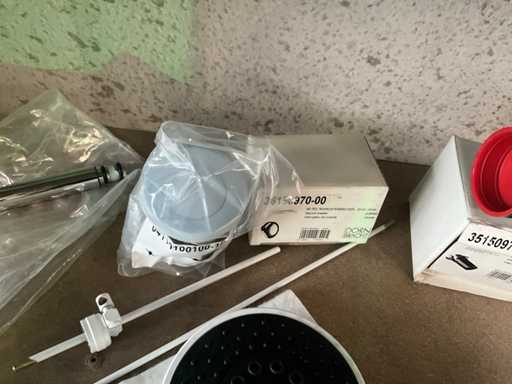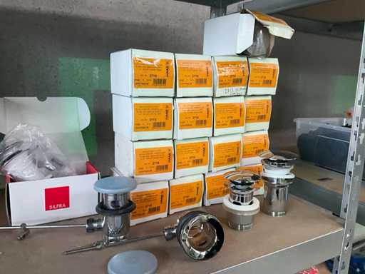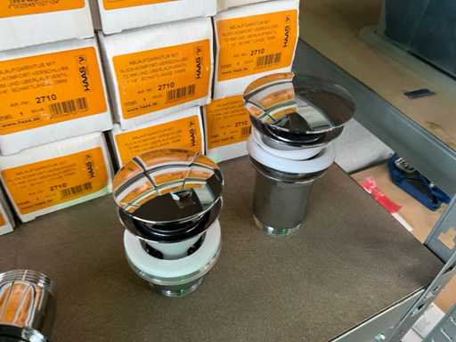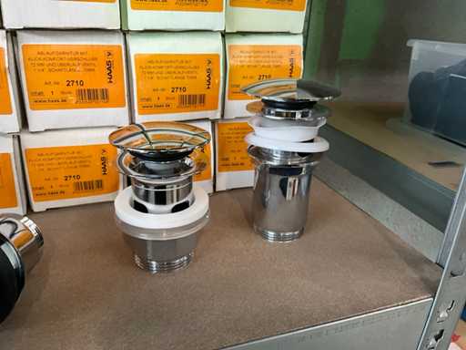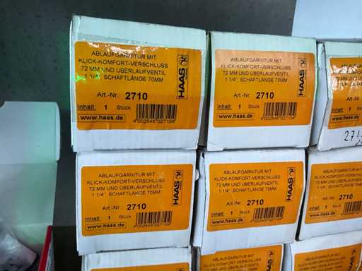Waaronder 16x afloopgarnituur HAAS 2710, verchroomde kraan Dornbracht, douchekop en diversen.