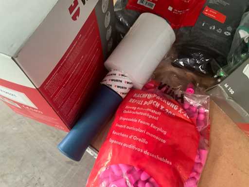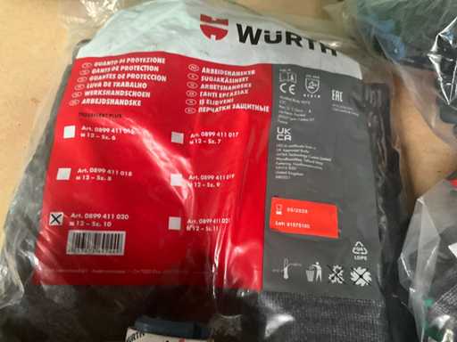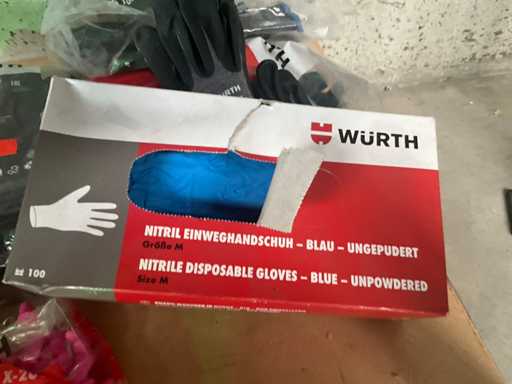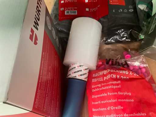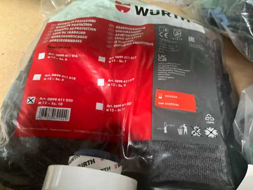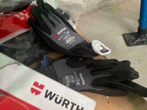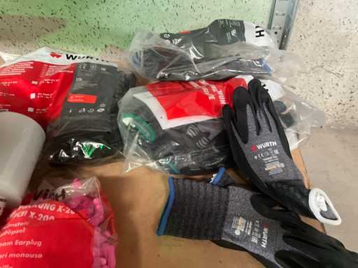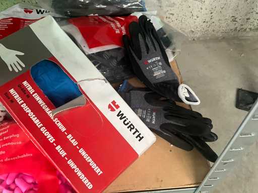Waaronder werkhandschoenen Wurth tigerflex plus, nitril handschoenen, oordopjes, enz.
