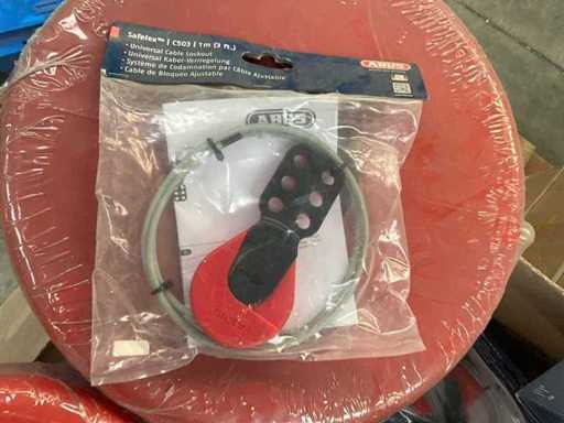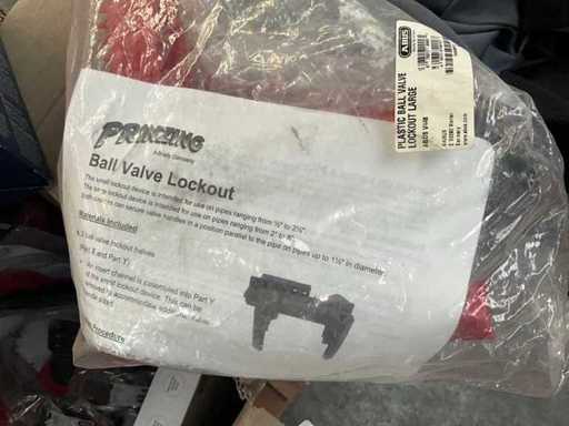 Waaronder safety redbox, ball valve lockout, universele lockout kabels Safelex waarvan 1 m, gate valves in diverse afmetingen en diameters, hasps, enz. (In doos)