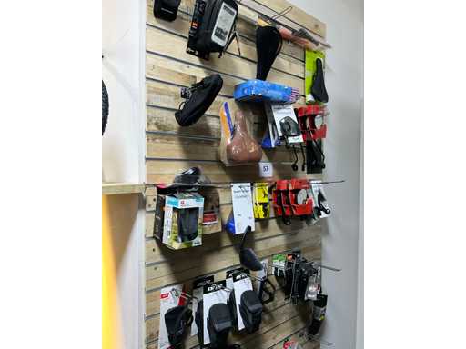 Waaronder spiegels, zadels, snelbinders, drinkbushouders en 5 diverse fietshelmen,