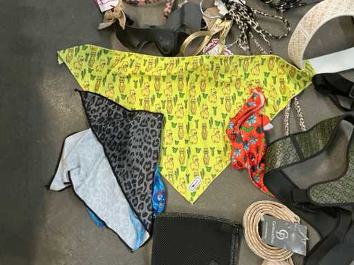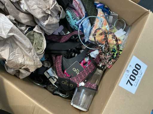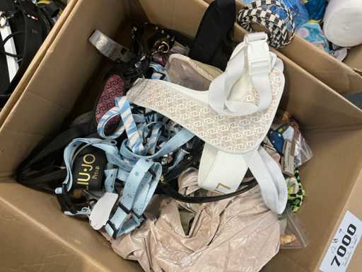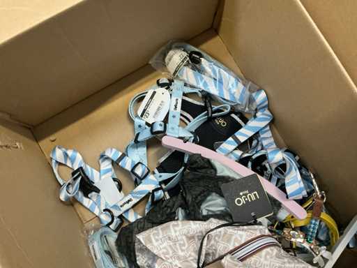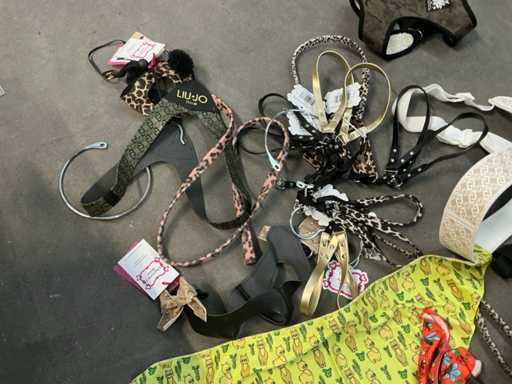 Waaronder LIU-JO Pets, TRILLYTUTTIBRILLY, BARCELONA DOG’S, BULLTASTIC, .., waaronder diverse leibanden, harnassen, bandana’s en enige regenjassen, in diverse uitvoeringen, kleuren en types, liggende in 2 dozen