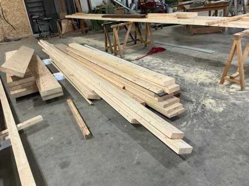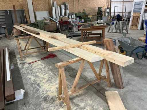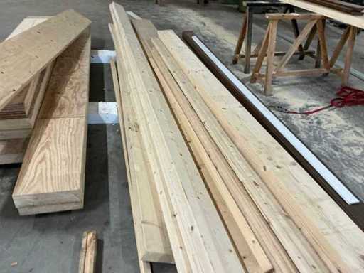 Partij diverse houten balken en planken