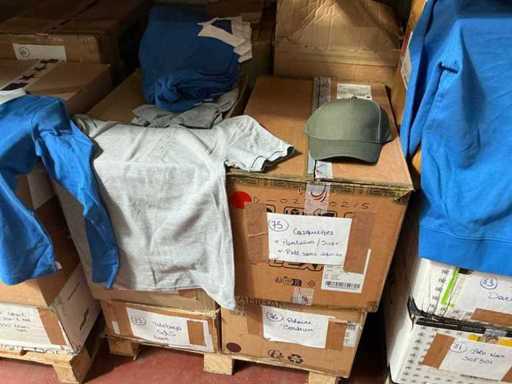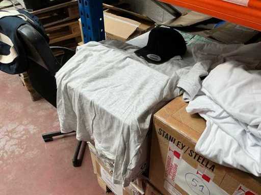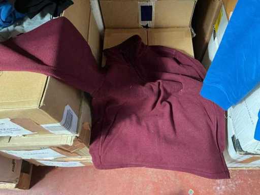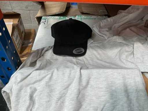 Waaronder Payper, Kariban, Yupoong, B&C,.., waaronder petten, polo’s, shirts, pulls, T-shirts, zweetbanden,…, allen in diverse maten en kleuren