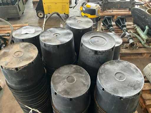 Ongeveer 175 ronde kunststoffen potten in diverse uitvoeringen waaronder