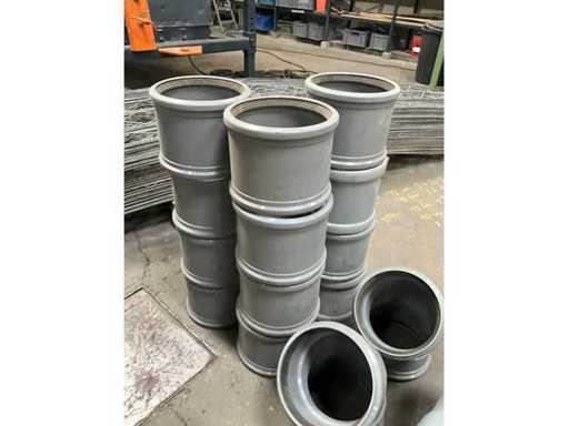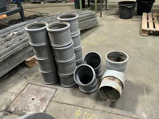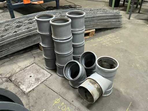 Bestaande uit 15 doorvoerstukken (steekmoffen), 2 bochten en 1 T-stuk.