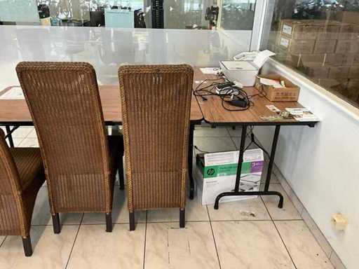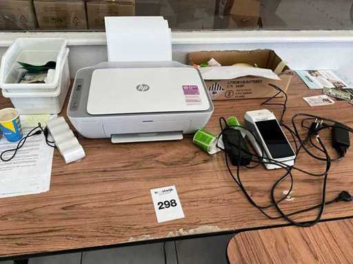 Bestaand uit HP Deskjet printer type 2820E, betaalterminal, oplader laptop, 2x opvouwbare tafel met 6 stoelen