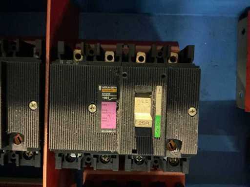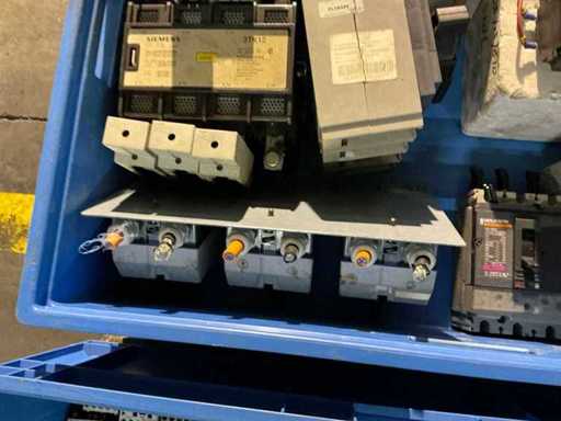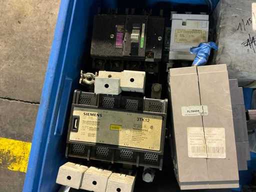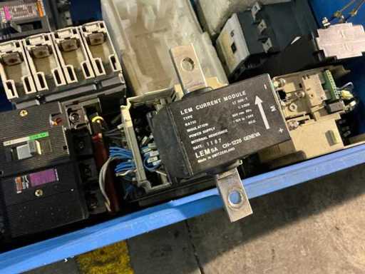 Waaronder Merlin Gerin vermogensautomaten, Siemens 3TK12 vermogensrelais, LEM Current LT 500-T stroommeetmodule,… inclusief 2 kunststof bakken
