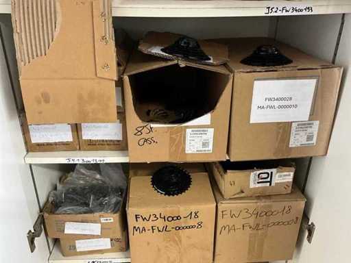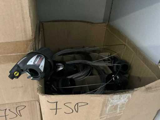 Bestaand uit aandrijf tandwielen, versnellingschakelaars, reflectoren, bellen, fietsketting op rol, remkabels, enz.., in en op kast 9-10+11