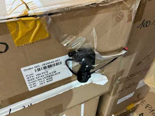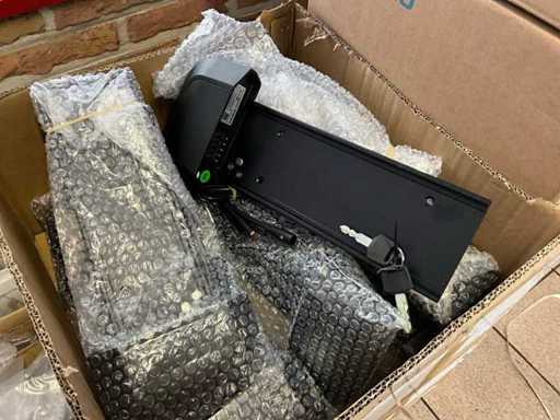 Bestaand uit 2x doos met tandwiel trap stang, +4x box met doc-in beugel voor fietsbatterij, 4x box met circa 170 stuks Schimano Altus versnellingsapparaat, 2x karton met circa 15 fiets bagagerek met batterij ruimte, +circa 7x karton met totaal circa 600 hydraulische handremmen