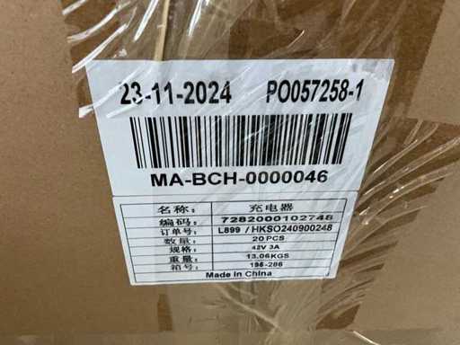 Bestaand uit 9x karton met opladers voor e-bike batterij, +4x karton met bedieningsschermen King-Meter, +3x karton met opladers, + 15x karton met totaal circa 350 stuks doc-in modules voor fietsbatterij